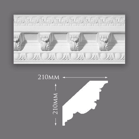 Plaster Cornice C0055 - Projection 210mm, Depth 210mm, Length 2900mm, Pattern Repeat 166mm