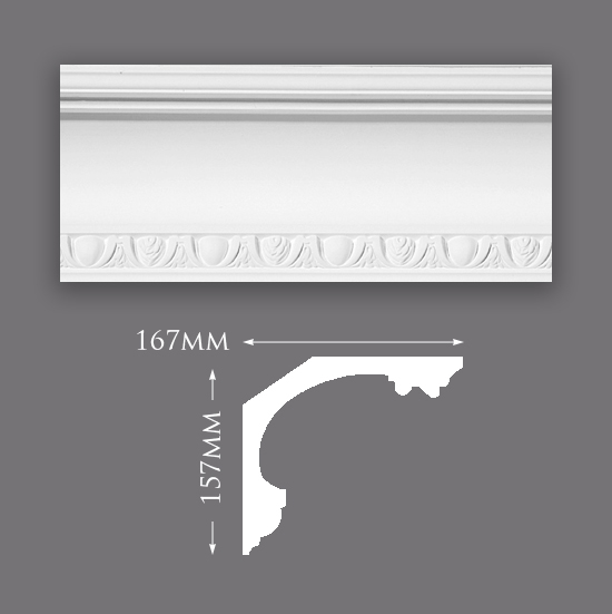 Plaster Cornice C0069 - 167mm Projection, 157mm Depth, 2700mm Length, 63mm Pattern Repeat